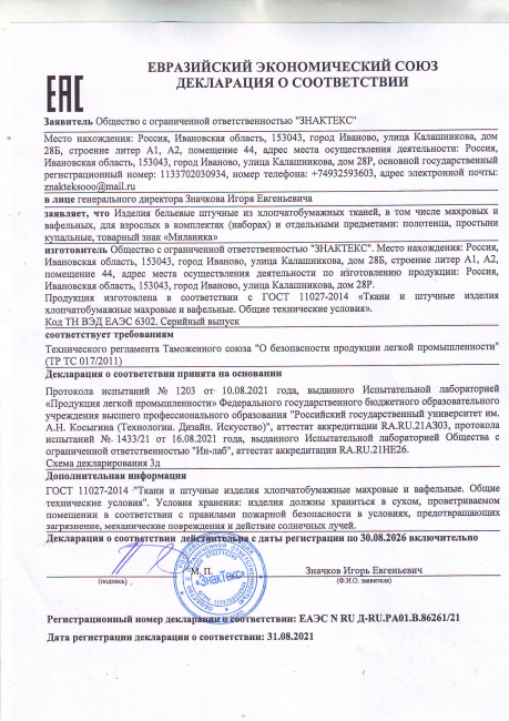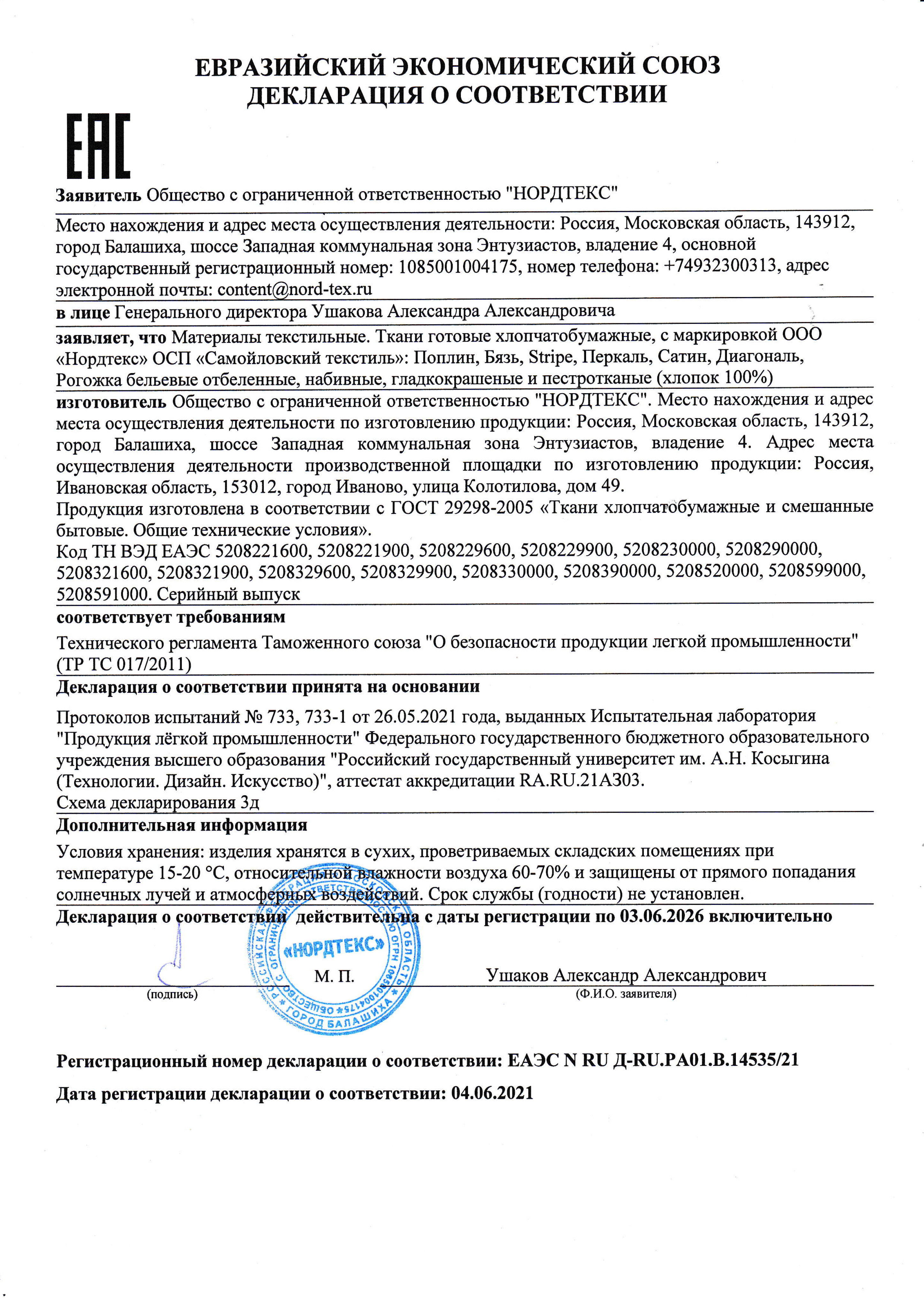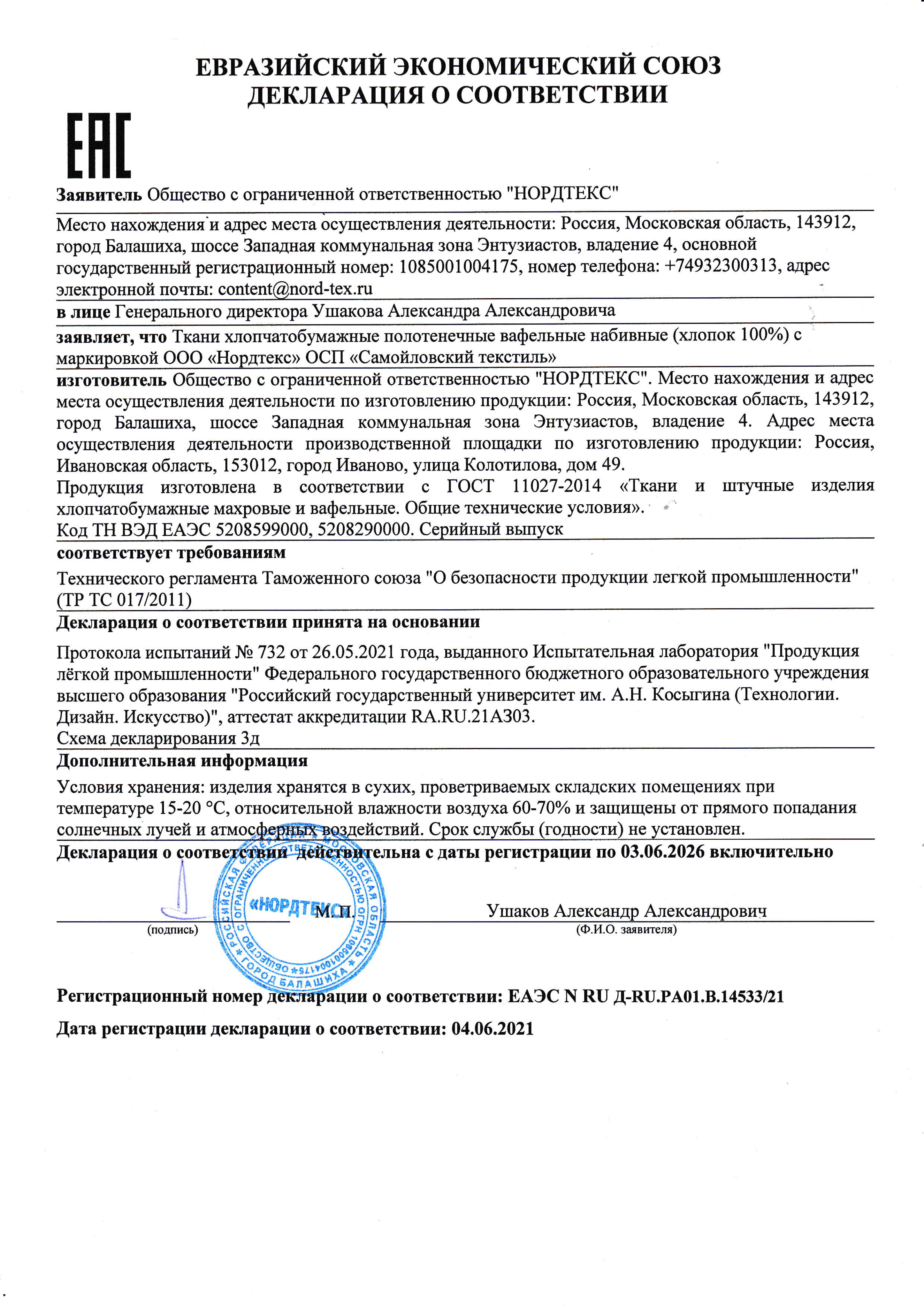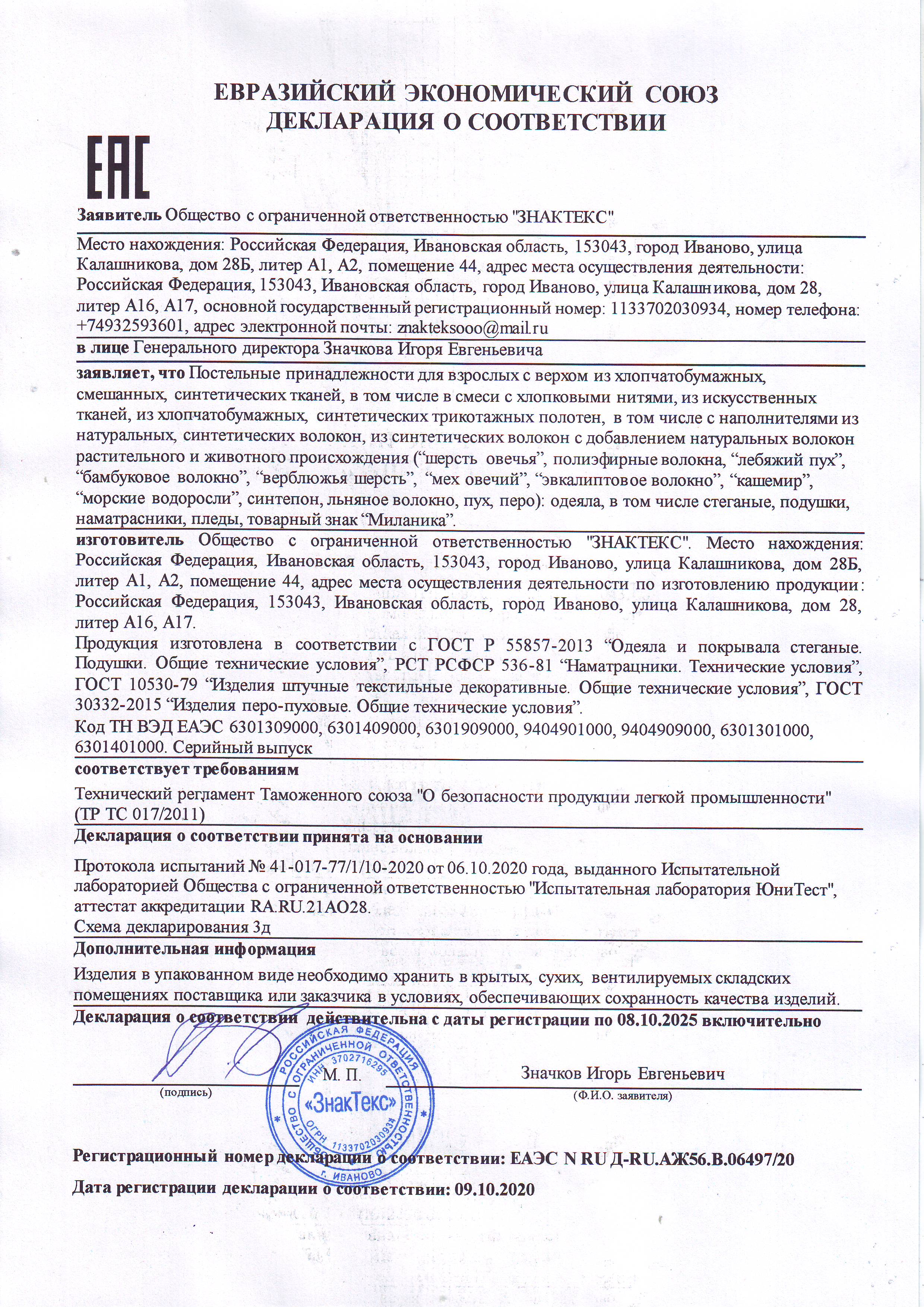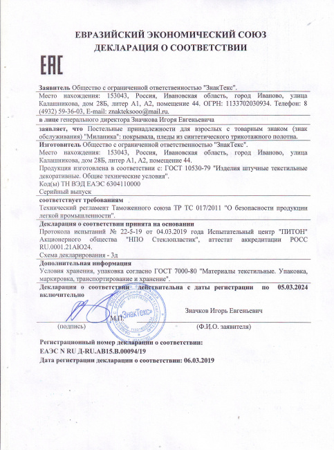 Декларация о соответствии евразийский союз Мягкий инвентарь